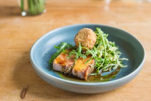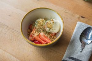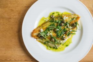 We have a kitchen garden on the farm, supplying our own soft fruit and vegetables, and we are fortunate to have some other exceptional market gardeners in the North Devon area. Our team love serving locally-foraged ingredients, such as wild garlic, sea purslane, sweet woodruff and pineapple weed, while local wild mushrooms are something of a house speciality.